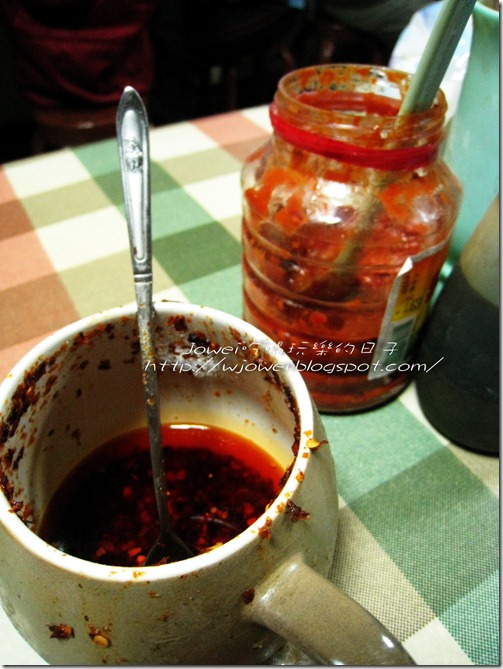 桌上有兩種辣的醬料,Jowei本身當然喜愛辣油的香辣感~