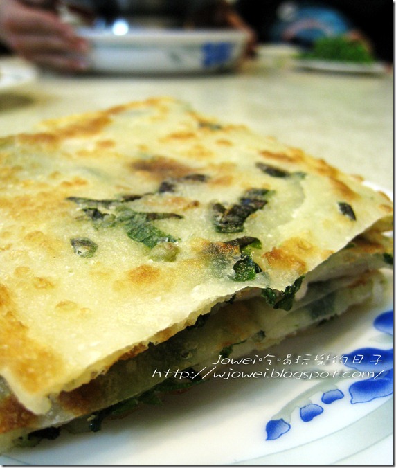 蔥油餅,這餅偏薄微脆,蔥花已經煎的焦香,不用沾醬已經很有味道~