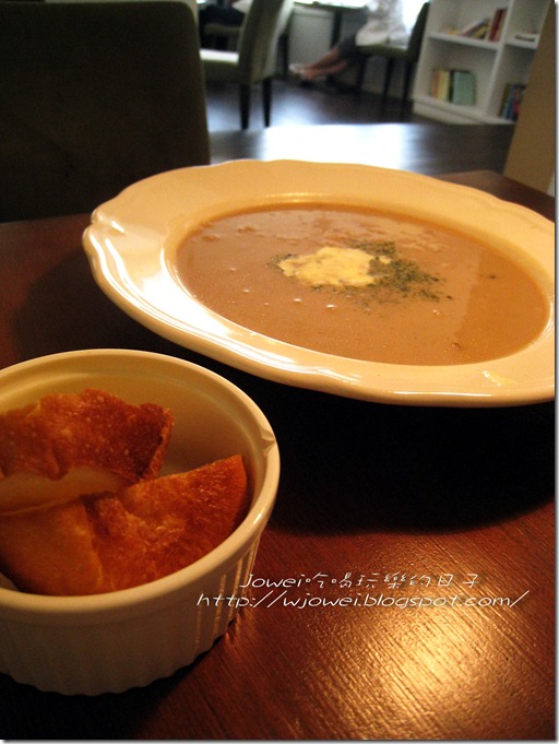 蘑菇濃湯&麵包,以樂活輕食為主題的餐廳,Jowei點了最便宜的濃湯套餐嚐嚐~<濃湯+麵包+熱咖啡>$89~蘑菇濃湯倒是挺有誠意的味道足夠,麵包卻不太有印象~